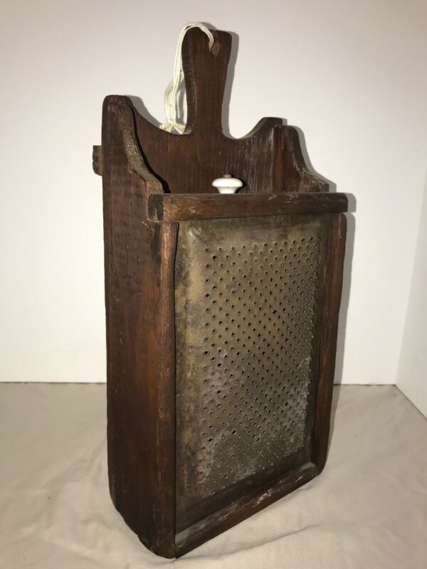 Title (ebay affiliate link): Antique/Vintage Early Primitive Wooden Box Punched Tin Food/Cheese Grater