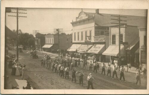 Title (ebay affiliate link): RPPC ~ BIRDSEYE ~ MAIN ST ~ MARCHING BAND ~ PARADE ~ CEDAR SPRINGS MICHIGAN 49E