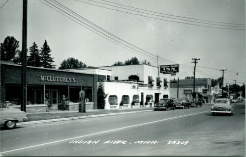 Title (ebay affiliate link): RPPC ~ MAIN ST ~ COKE ~ PURE GAS ~ OIL ~ CAFE ~ COCKTAILS ~ INDIAN RIVER MI 42E