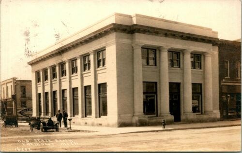 RPPC ~ MAIN ST ~ EXTERIOR ~ 1915 OLD STATE BANK ~ FREMONT MICHIGAN 34D