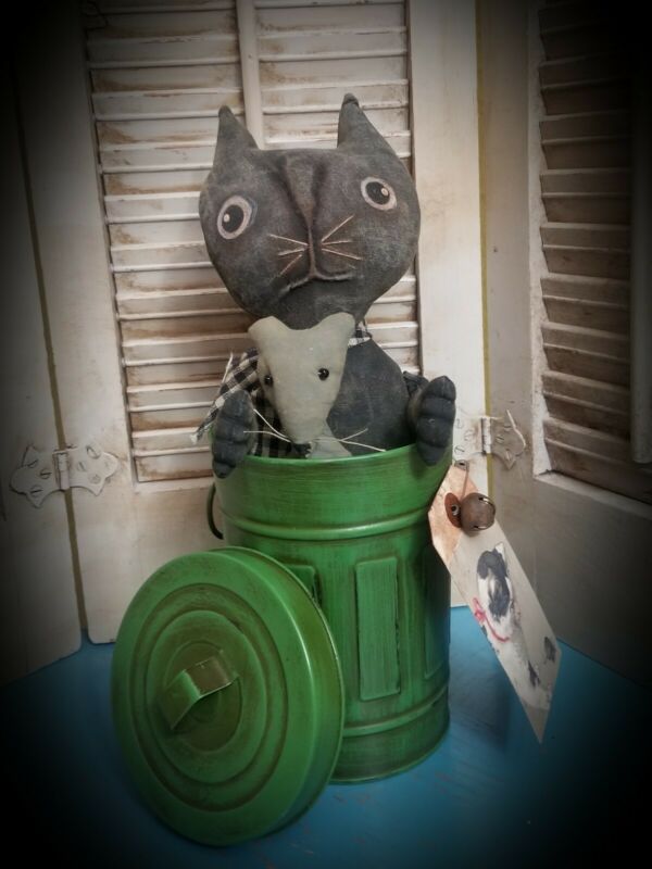 Title (ebay affiliate link): PRIMITIVE BLACK CAT & MOUSE DOLL IN METAL TRASH CAN~*~ KITTY~*~ MAKE-DO~*