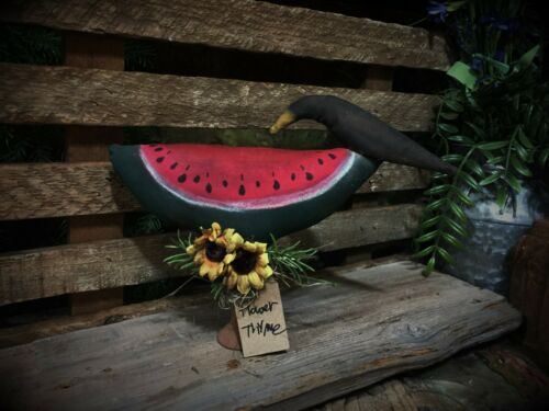 Title (ebay affiliate link): *Primitive 7x9in WATERMELON W CROW BOBBIN FABRIC HANDMADE Country old rusty doll