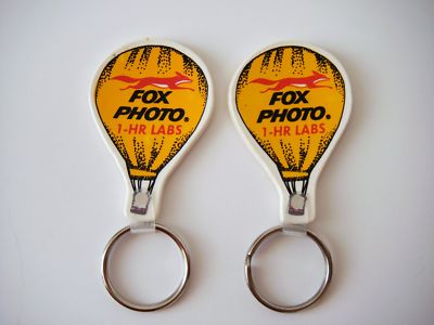 2 VINTAGE FOX PHOTO 1 HR LAB KEYCHAINS