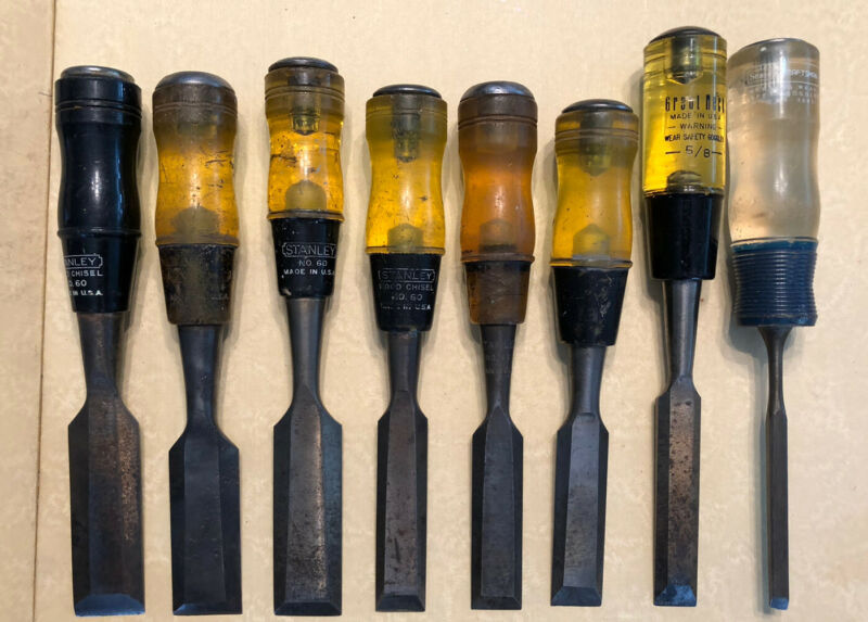 Title (ebay affiliate link): Six Vintage Stanley No. 60 woodworking Chisels, Plus Two Extras, Made In USA