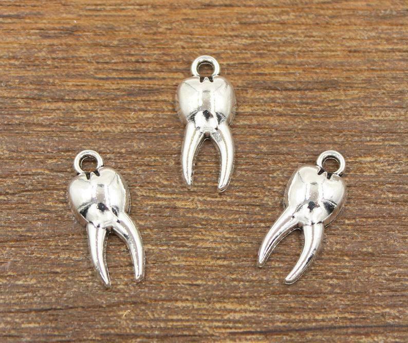 Title (ebay affiliate link): 10pcs Antique Silver Tooth Charms Tone Pendant Bead Jewelry Making 8x19mm