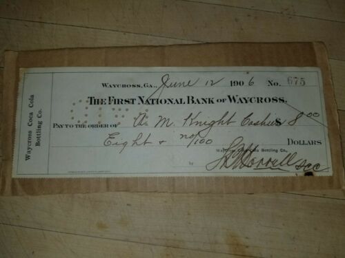 Title (ebay affiliate link): Antique Coca Cola Check 1906 Waycross Georgia Check number 675