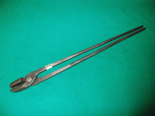 VINTAGE BLACKSMITH TONGS 19" LONG 7/8" WIDE FLAT JAWS - SIGNED ( LOT 2 )
