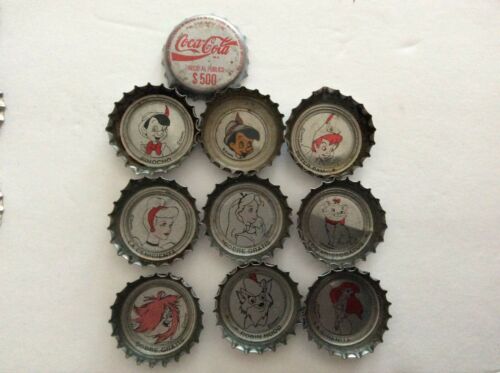 Title (ebay affiliate link): 9 Different Coca-Cola Disney Soda Bottle Caps - Used - Plastic Lined