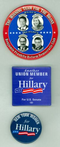 3 New York US Senator Hillary Clinton Political Campaign Pinback Buttons Gore