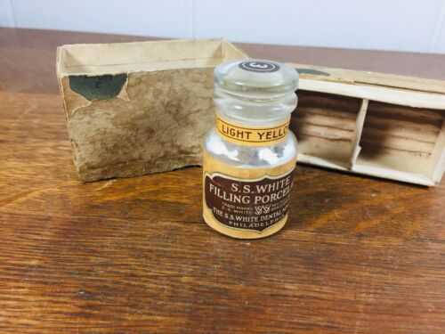 Title (ebay affiliate link): Vintage Dentist Dental S.S. White Filling Porcelain Bottle with Box Unique