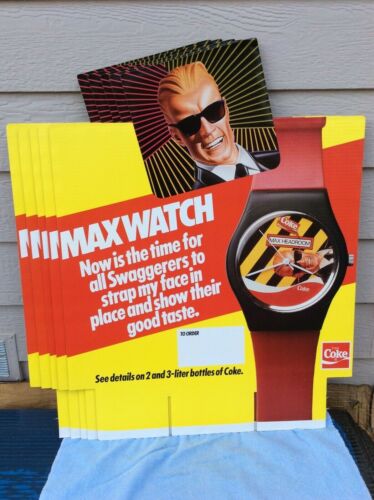 Title (ebay affiliate link): 17 NOS Vintage Cardboard Coca Cola Max Headroom Posters for Max Watch Near Mint