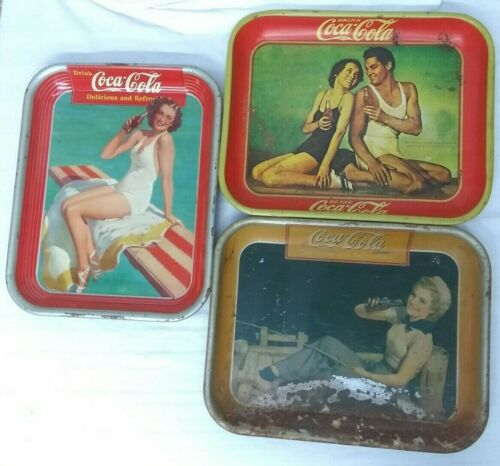 3 Coca Cola Trays 1934 1939
