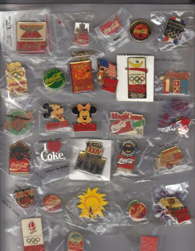 Title (ebay affiliate link): 30 ASSORTED COCA-COLA HAT 0R LAPEL PINS OLYMPICS, FOOTBALL, McDONALDS,DISNEY