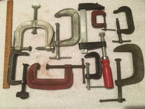 9 Various Sizes and Types of Home Woodworking C-Clamps.