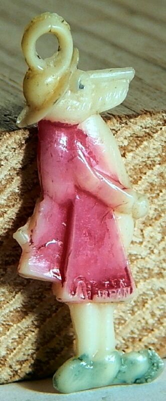 VINT CELLULOID WOLF DOG IN ROBE BIG BAD CHARM JAPAN