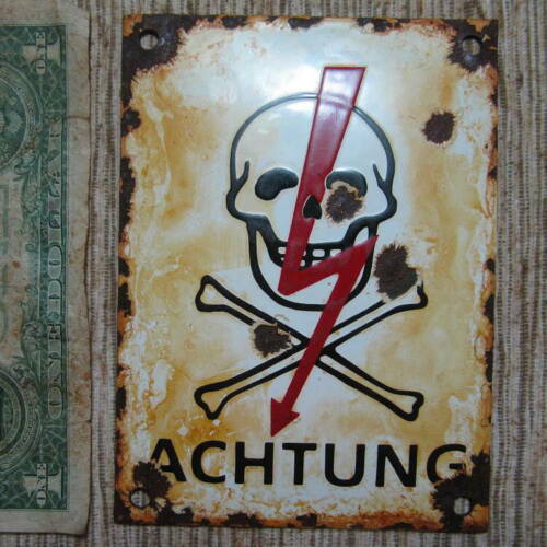 Title (ebay affiliate link): 100% ORIGINAL - Porcelain Sign 1939-1945, WWII, Danger, Skull & Crossbones No 70