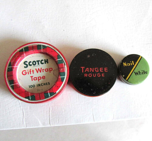 Title (ebay affiliate link): 3 Vintage Advertising Tins Sample 3M Scotch Tape Tangee Rouge Nail White FREE SH