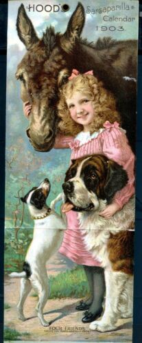 1903 CALENDAR FOR HOODS SARSAPARILLA "FOUR FRIENDS" GIRL DOGS & DONKEY