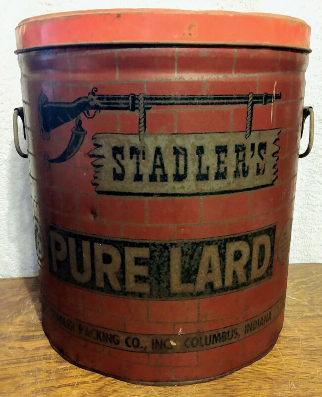 Title (ebay affiliate link): VINTAGE STADLER''S PURE LARD ADVERTISING TIN CAN MUSKET, RIFLE GRAPHIC