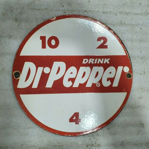 DRINK DR PEPPER 12 INCHES ROUND VINTAGE ENAMEL SIGN