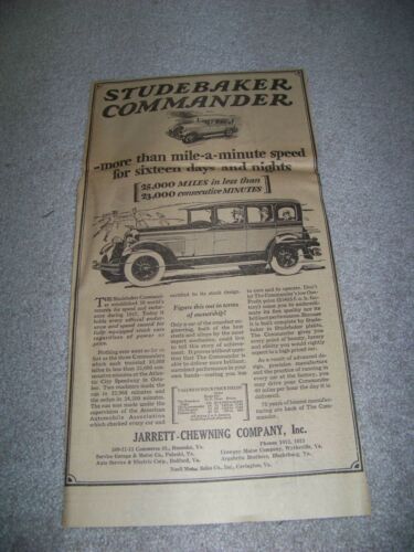 Title (ebay affiliate link): 1928 The Roanoke Times VA Jarrett Chewning Company Studebaker Commander