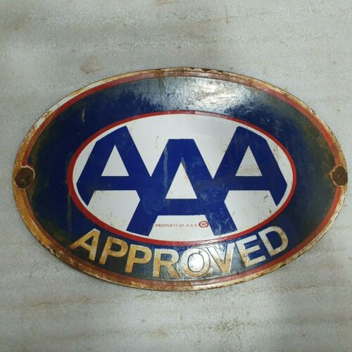 AAA APPROVED 16 1/2 X 11 INCHES ROUND VINTAGE ENAMEL SIGN