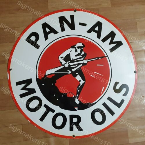 PAN AM MOTOR OILS PORCELAIN ENAMEL SIGN 30 INCHES ROUND