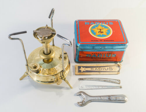 Title (ebay affiliate link): Rare Swedish Radius No.20 Brass Camping Stove & Tools In Original Tin