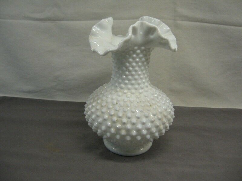 Title (ebay affiliate link): Vintage Fenton White Milk Glass 7 1/4" Vase Hobnail Ruffled Edge VGC