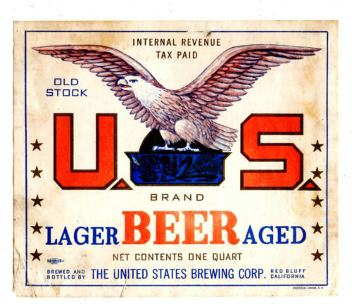 Title (ebay affiliate link): 1930s UNITED STATES BREWING CORP, RED BLUFF, CALIFORNIA U.S. BEER IRTP LABEL