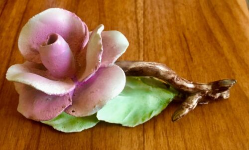 Title (ebay affiliate link): Vintage Italian Capodimonte Style Ceramic Flower Ornament - Pink Rose on Stem