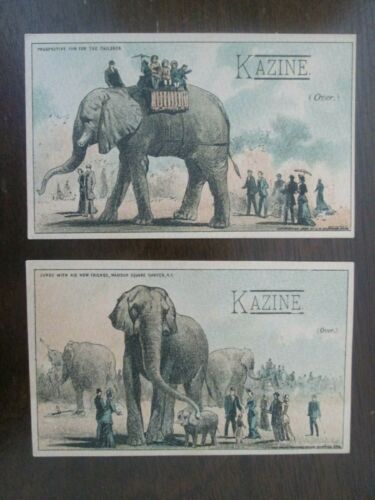 2 Victorian Trade Cards for Kazine with Jumbo the Elephant