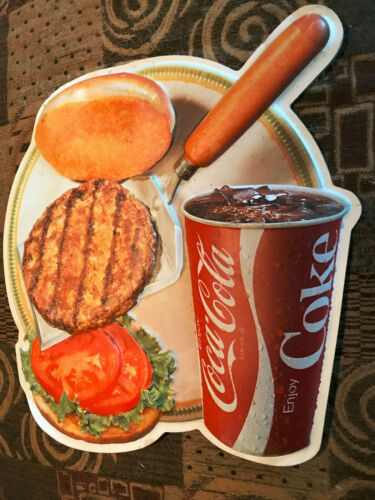 Title (ebay affiliate link): Vintage 1970''s Coca-Cola plastic raised impression advertising poster, hamburger
