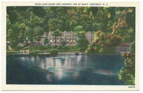 Title (ebay affiliate link): Vintage North Carolina Linen Postcard Montreat Lake Susan and Assembly Inn Night
