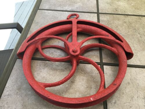 RUSTIC VINTAGE ANTIQUE CAST IRON WELL PULLEY 19x17 inched some damage