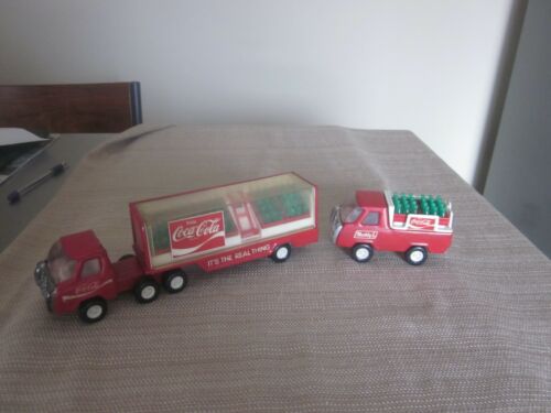 2 Vintage Buddy L Coca Cola Trucks Semi and Delivery Truck with Bottles