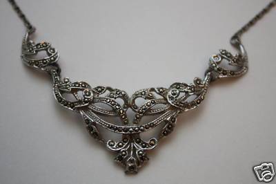 Title (ebay affiliate link): Antique Silver & Marcasite necklace with scroll design
