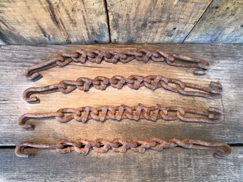 Title (ebay affiliate link): Lot of 4 Vintage Cast Iron Rusty Chain Lengths with Clasps ~ Vintage Farm Tools