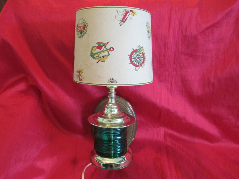 VINTAGE NAUTICAL WALL LAMP IN NICE WORKING CONDITION SHIP GREEN GLOBE