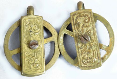 PAIR OF ORIGINAL EMBOSSED BRASS PULLEYS FOR VIENNA REGULATOR STYLE CLOCKS