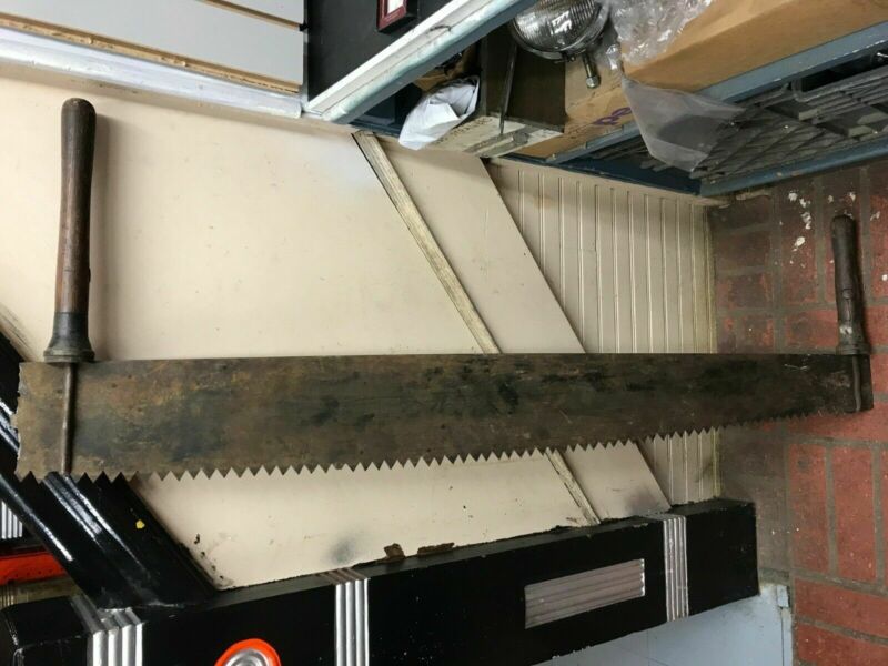 Title (ebay affiliate link): VINTAGE 2 MAN 46" BROAD BELLY LOGGING SAW LUMBERJACK CABIN CAMP MAN CAVE GARAGE