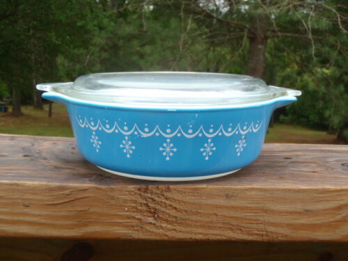 Title (ebay affiliate link): Vintage Pyrex SNOWFLAKE BLUE Glass Bake-Serve-Store 1 PT CASSEROLE #471 EUC NR