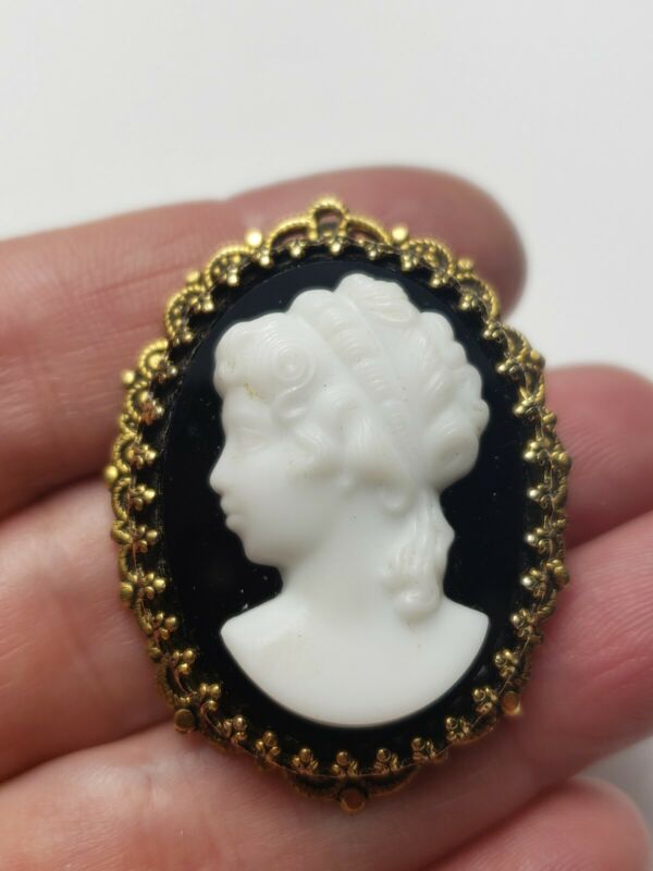 Title (ebay affiliate link): Estate Vintage Gold Tone Milk Glass Cameo Pin brooch Pendant 1.75" T