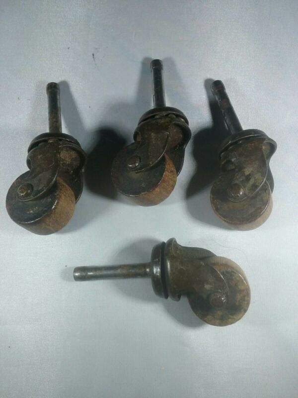 Set Of 4 Antique Old Vintage Wood Wooden Furniture Wheels Casters