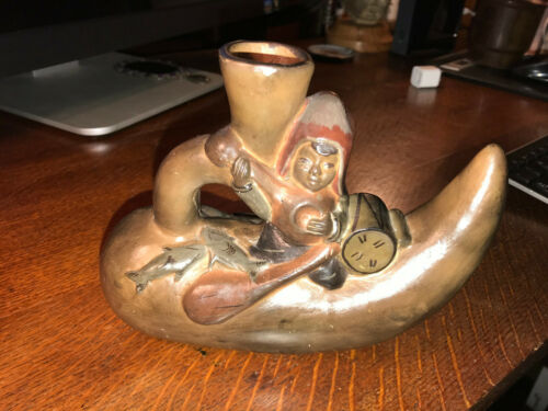 Title (ebay affiliate link): POTTERY MOCHE STIRRUP VESSEL Clay. Fisherman/musician on fishing boat vessel