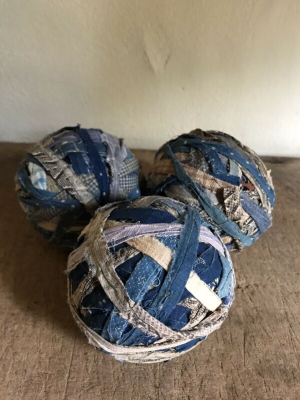 Title (ebay affiliate link): 3 BEST Big Antique Handmade Rag Balls Indigo Blue Calico Textile AAFA