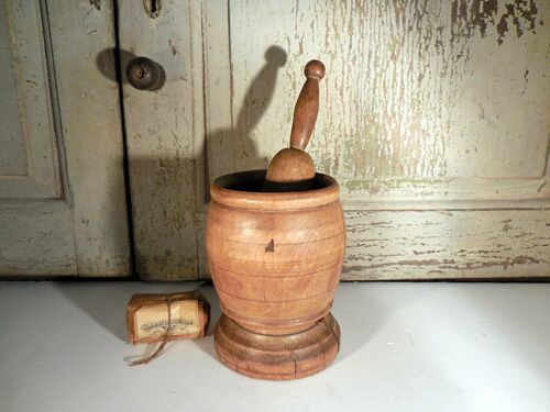 AAFA Primitive Turned Mortar & Pestle Antique Wood Apothecary Spice Grinder