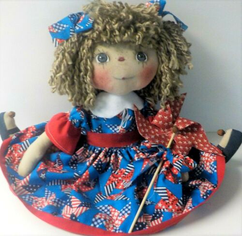 Primitive PATRIOTIC WINDMILLS Raggedy Ann Doll " WENDY" PRIMITIVE HM WINDMILL