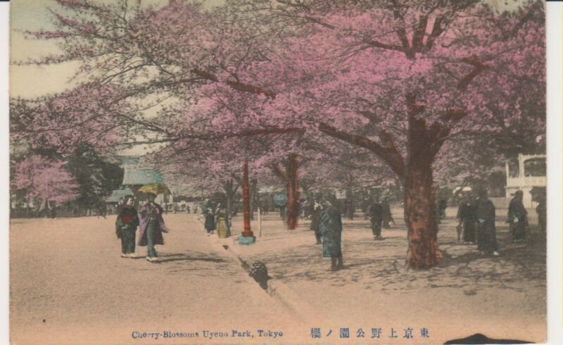 Title (ebay affiliate link): Uyeno Park, Tokyo Japan Vintage Postcard, Cherry Blossums
