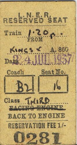 Title (ebay affiliate link): Railway ticket LNER London - Kings Cross seat reservation 1937